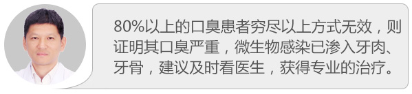 口臭是口腔疾病的一种,但由于荒诞误区的原因,很多患者求助于中医或中药牙膏,这些往往只能缓解症状,贻误及时治疗,导致口臭陪伴终身,严重影响生活工作质量。所以,一旦确诊是口源性口臭,就必须采取有效措施。