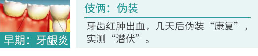 牙龈炎是指牙龈没有组织吸收的牙龈炎症,但由于牙周袋内的菌斑和牙周组织内的细菌感染,导致牙龈红肿易出血。在没有得到治疗的情况下,牙龈炎继续发展成为牙周病,牙周组织吸收、牙齿松动甚至脱落。
